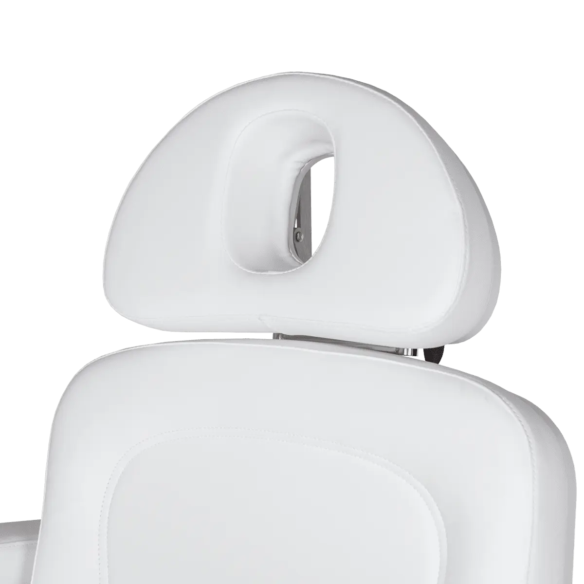 Мягкие элементы изготовлены из плотного поролона, который обладает эффектом памяти, что гарантирует максимальный комфорт и расслабление Вашим клиентам во время процедур. Обшивка сделана из экологически чистого и качественного материала – экокожи. Купить косметологическое кресло МД-848-3, 3 мотора можно под любой дизайн интерьера. Подголовник с отверстием для лица регулируется по высоте и в горизонтальной плоскости.