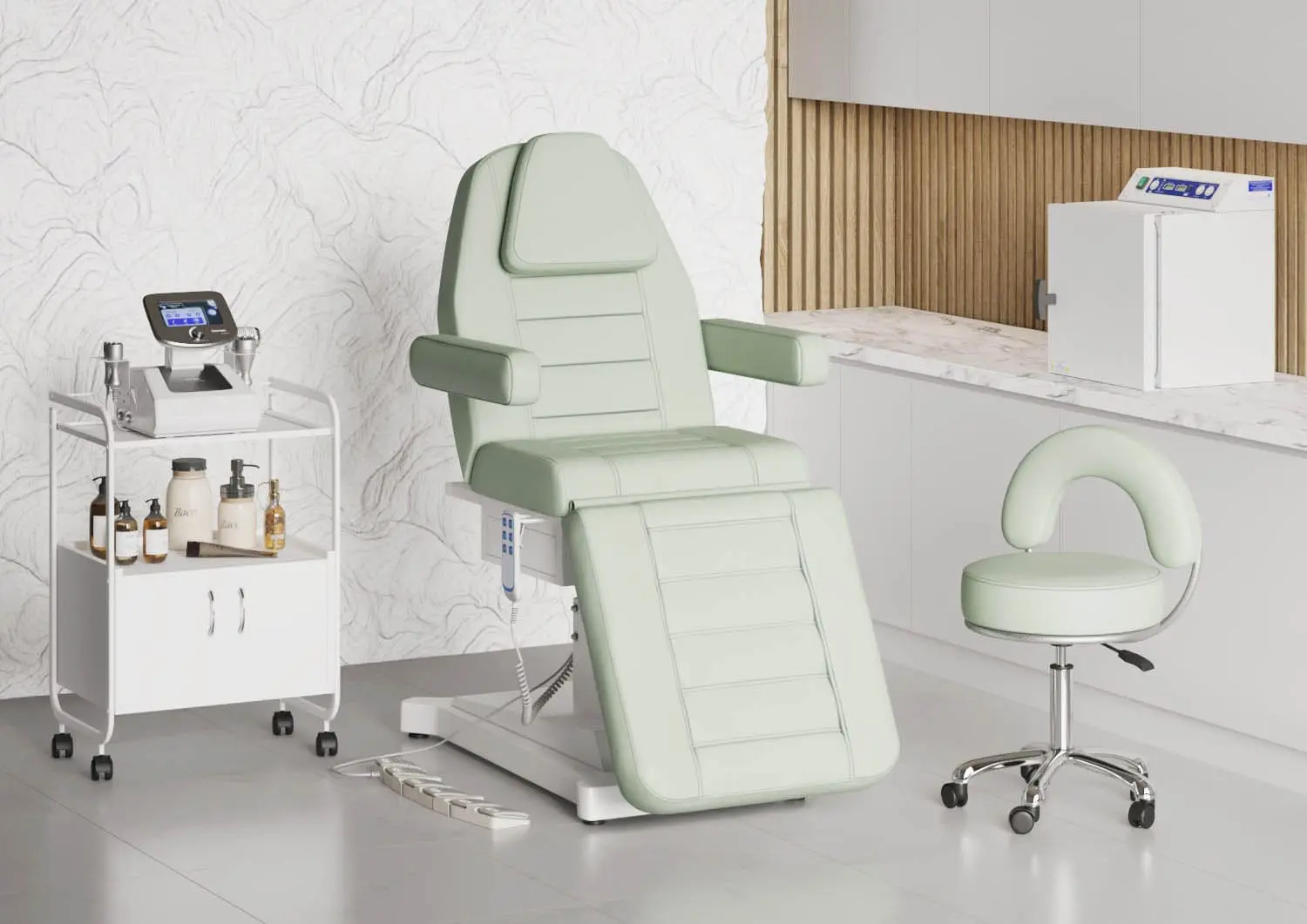Купить кресло косметологическое Альфа-11, 3 мотора можно для обустройства салона красоты, косметологического или массажного кабинета.