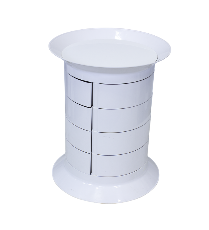 На верхней полочке можно положить инструмент первой необходимости. Остальные приспособления вместе с косметологическими средствами можно компактно разместить в ящиках, которые свободно и бесшумно выдвигаются. Для часто используемых принадлежностей предусмотрены 4 прозрачных ящичка. Мастер с легкостью найдет нужный инструмент или средство, не открывая ящик. Для быстрого перемещения по рабочей зоне тележка укомплектована маневренными колесиками. Установить оборудование можно даже в помещениях с маленькой площадью благодаря компактным размерам.