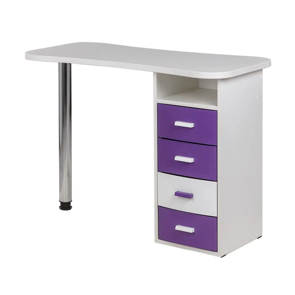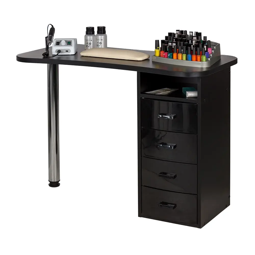 Столешница имеет оптимальные размеры и продуманную изогнутую форму для комфортной работы с клиентом. Практичная тумба поможет разгрузить рабочую поверхность от инструментов, которые не используются в процедуре.