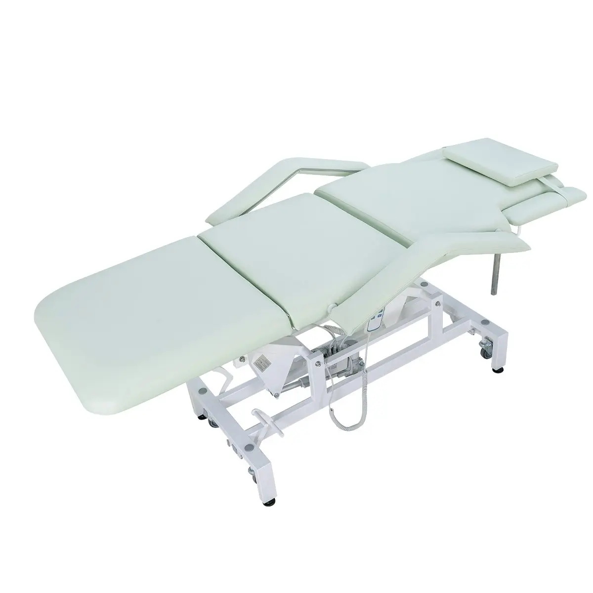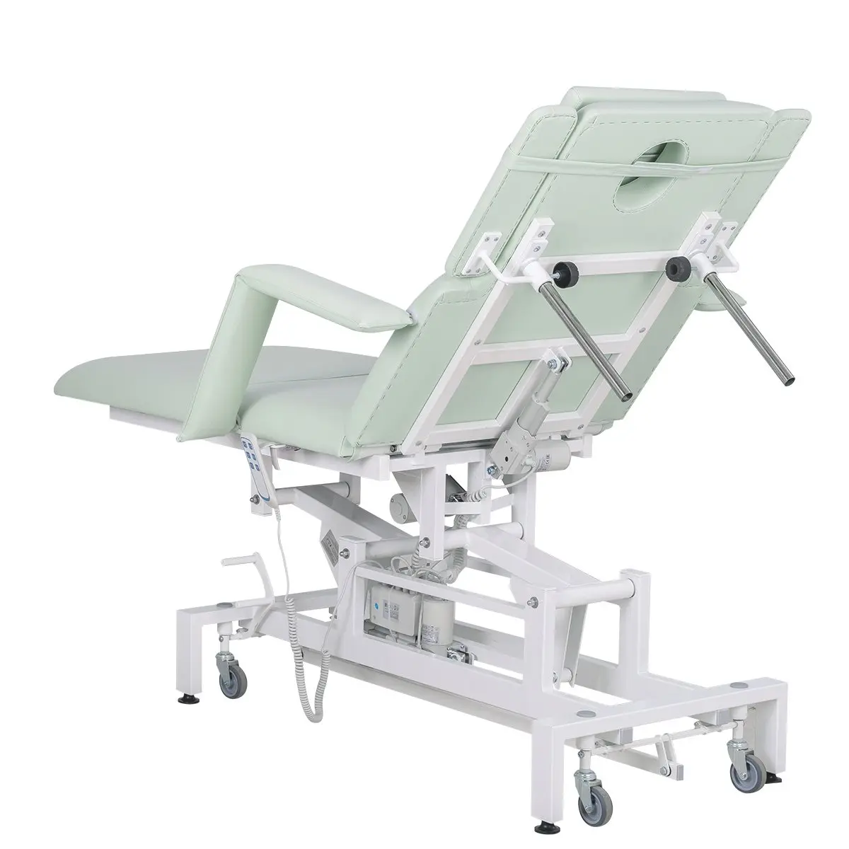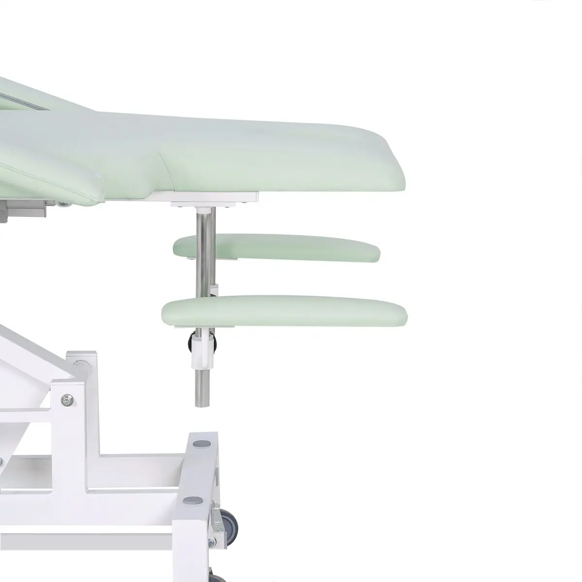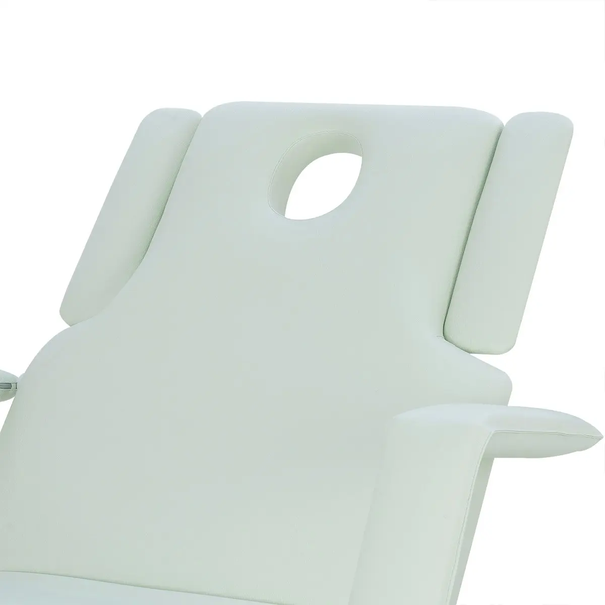 Кушетка массажная МД-849 (Элегия-3А) на колесной базе – это профессиональное оборудование от компании МЭДИСОН. Она разработана для применения в массажном или косметологическом кабинете высокого уровня. Мягкая часть кушетки разделена на три сегмента: сиденье, спинка, элемент для ног. Это значительно повышает комфорт при использовании и обеспечивает необходимую функциональность во время работы. В спинке есть специальный вырез для лица. Для удобного расположения рук по время массажа предусмотрены навесные подлокотники, регулируемые по высоте.
