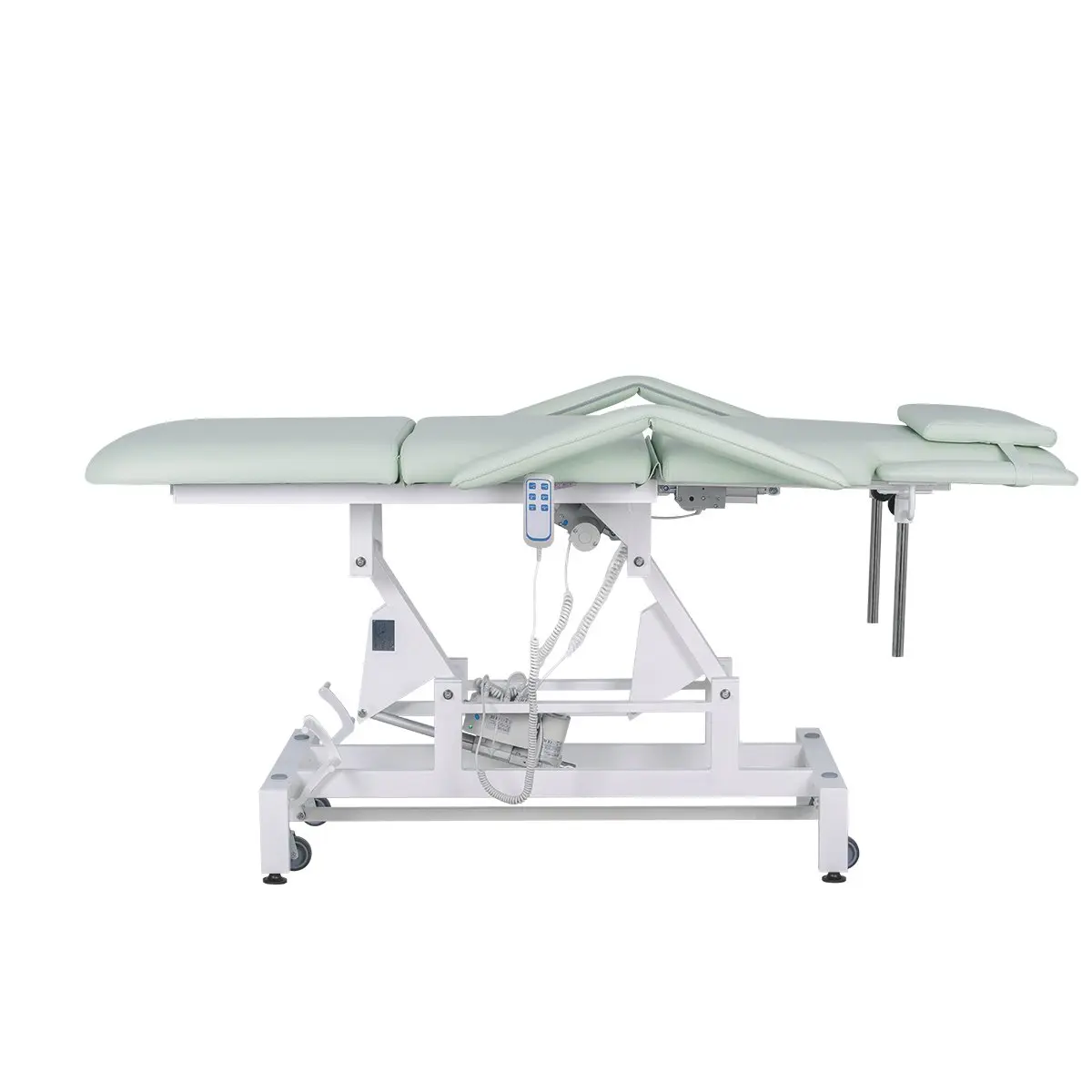 В данной модели установлено 3 мотора для подъема кушетки, регулировки спинки и наклона сиденья. Благодаря такой конструкции купить кушетку массажную МД-849 (Элегия-3А) на колесной базе можно для оказания как массажных, так и косметологических услуг. При помощи компактного и удобного пульта мастер сможет легко настраивать кушетку для конкретной процедуры. Для обшивки мягких деталей применяется современный обивочный материал – качественная экокожа. Кушетка массажная МД-849 (Элегия-3А) на колесной базе в магазине МЭДИСОН представлена в любом цвете под заказ.