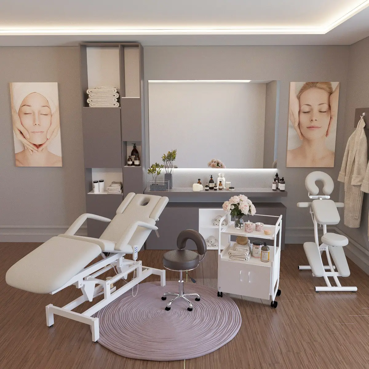 Вы можете заказать кушетку на подпятниках (стандартная комплектация) или на колесной базе.