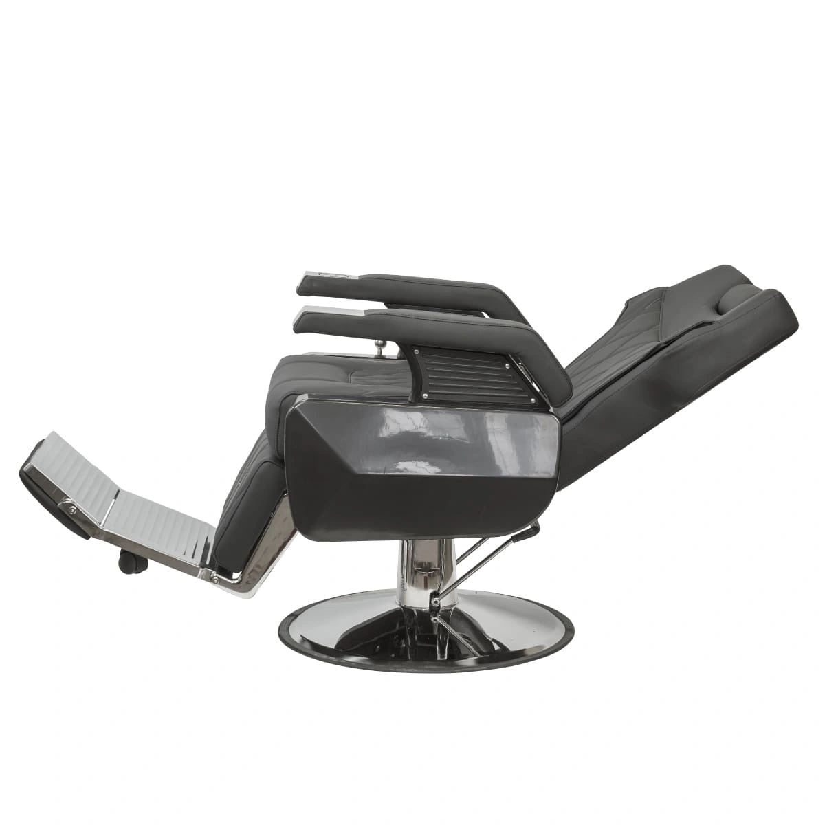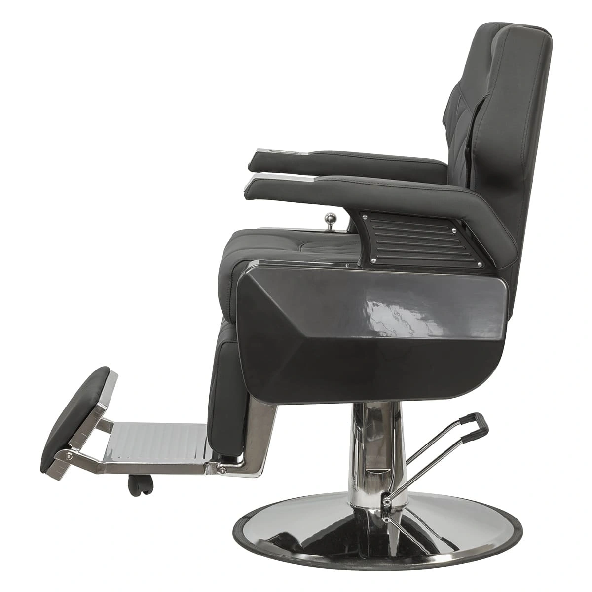 Широкое сидение с массивными подлокотниками позволит клиенту максимально расслабиться во время бритья и стрижки. Кресло дополнено большой подножкой с мягкой подушкой, что обеспечит комфорт ногам клиента.