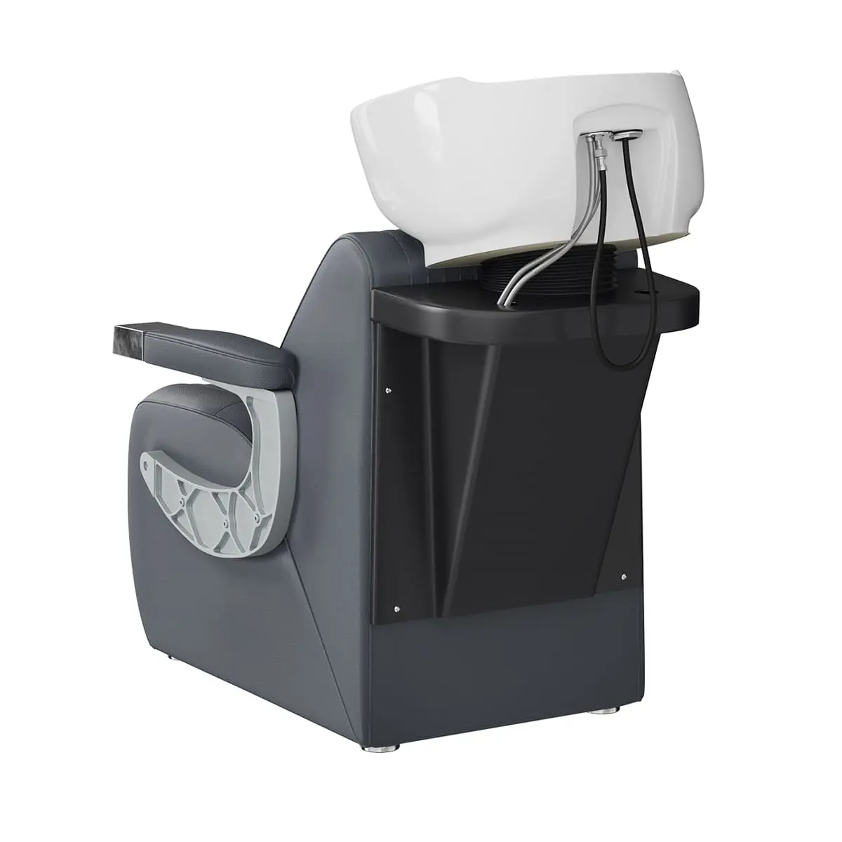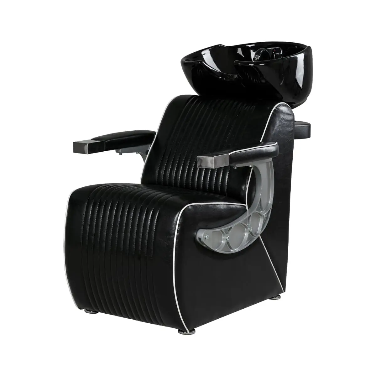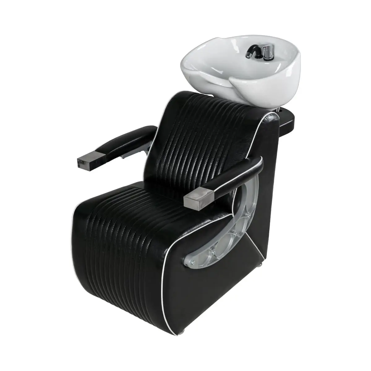 Комплектация: раковина, сантехнические комплектующие, узел наклона раковины, каркас мойки, кресло, хромированные подлокотники с накладками под цвет кресла.