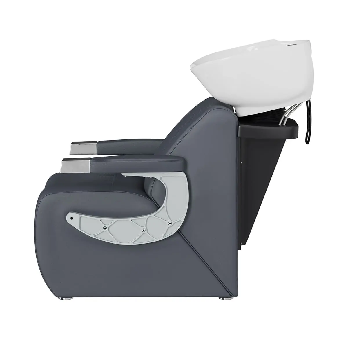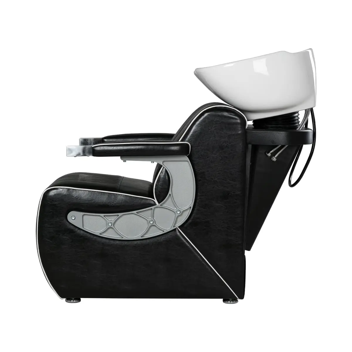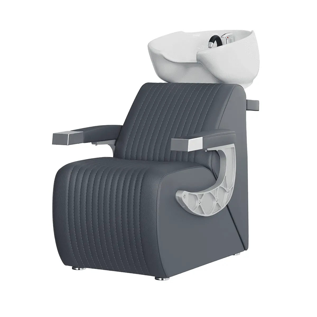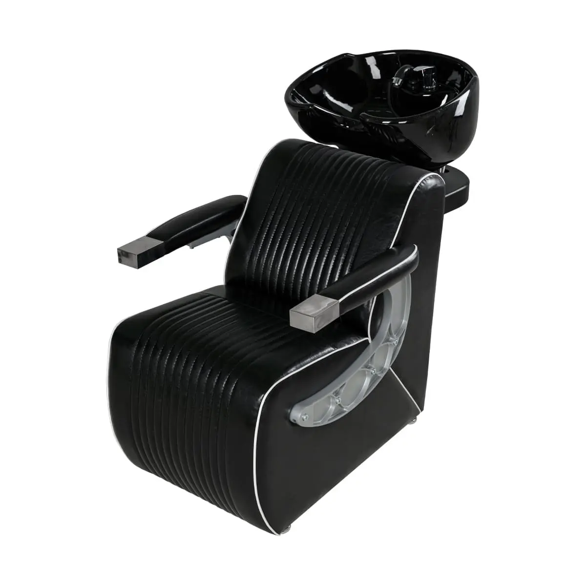 Комплектация: раковина, сантехнические комплектующие, узел наклона раковины, каркас мойки, кресло, хромированные подлокотники с накладками под цвет кресла.
