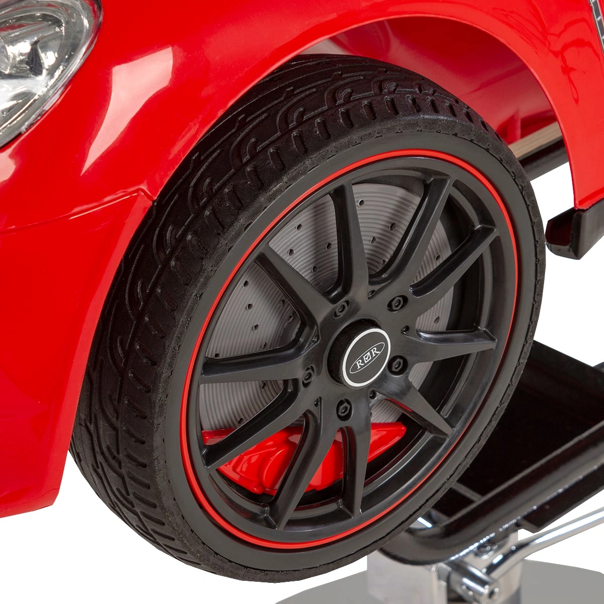 Комплектация: кресло в виде машинки на металлическом каркасе, хромированное основание, гидравлика, кабель AUX для воспроизведения музыки, кабель для зарядки аккумулятора.