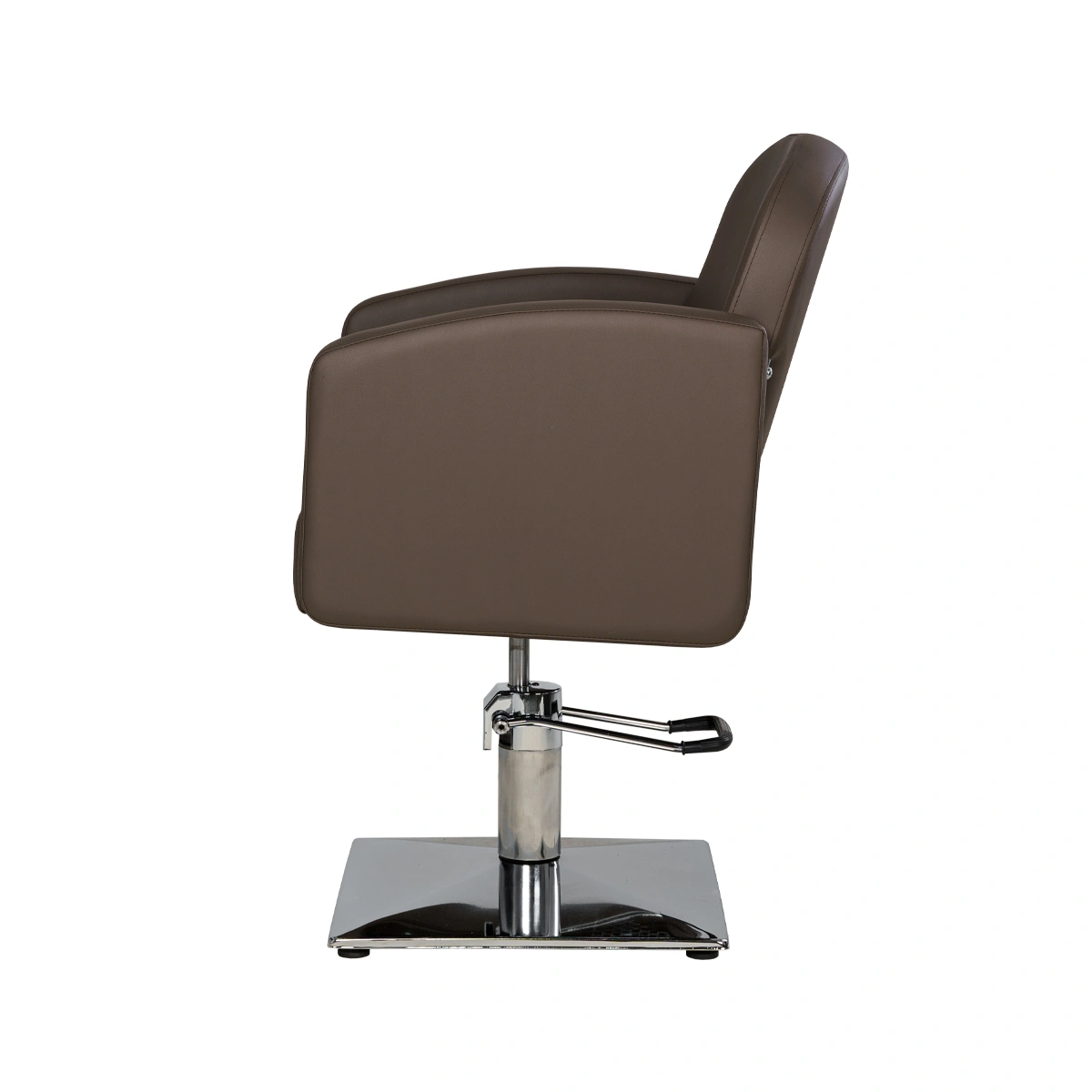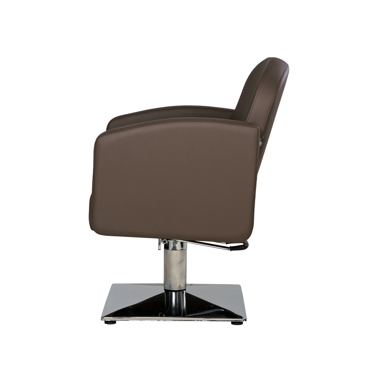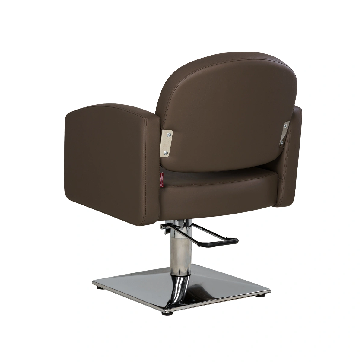 Каркас парикмахерского оборудования изготовлен из крепкого металла, что обеспечит долговечность и устойчивость кресла. Данная модель в базовом укомплектовании оснащена хромированным основанием в форме квадрата.