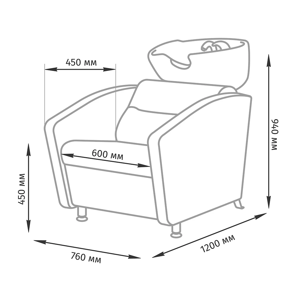 Посадочное место составляет 600 мм. Этот показатель гарантирует комфорт и эргономику изделия. Регулировка угла наклона раковины позволяет подобрать комфортнре положение для каждого клиента. У мойки универсальный дизайн, поэтому ее можно поставить в комплект с любым креслом.