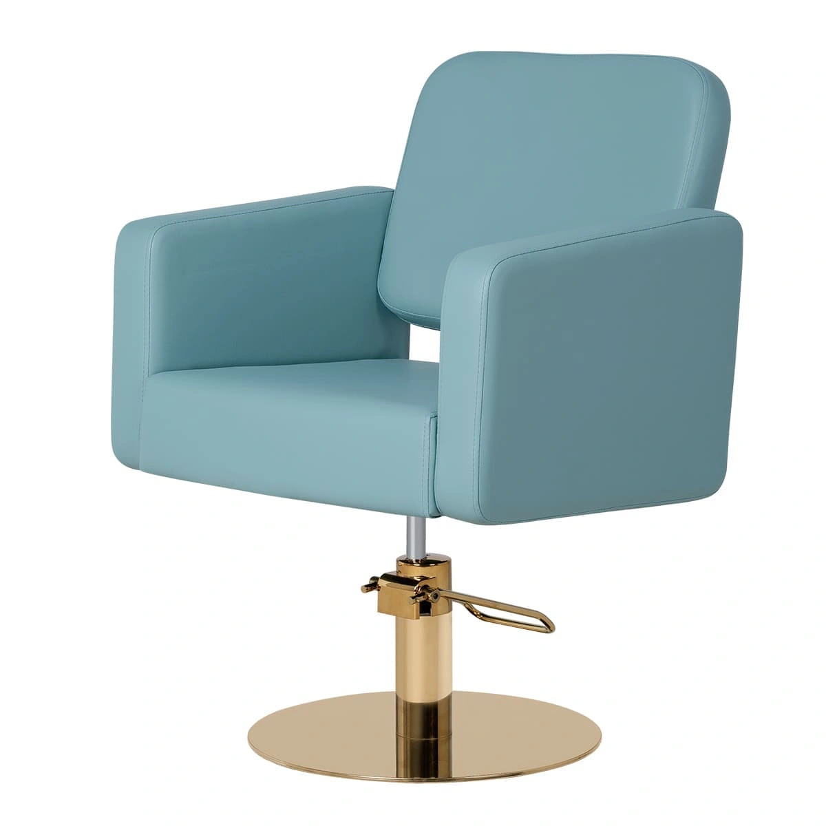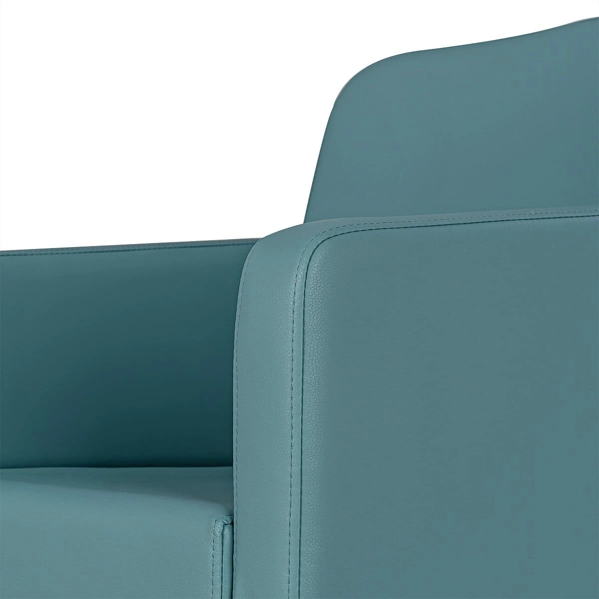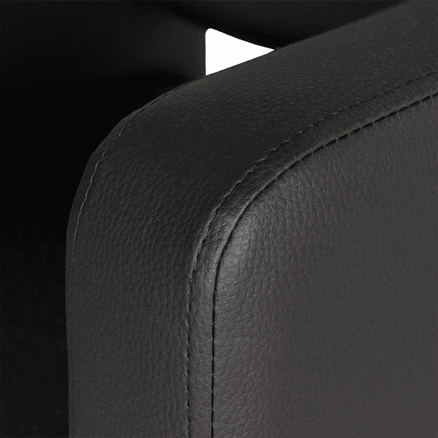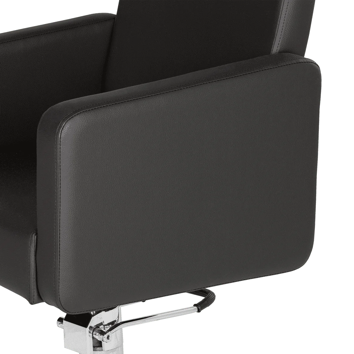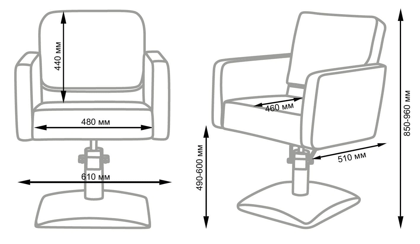 Удобное сидение с мягкой спинкой в сочетании с подлокотниками помогут обеспечить комфорт каждому клиенту. В качестве наполнителя применён плотный поролон, который не образует вмятин в течение длительного срока эксплуатации. Для обшивки использована прочная экокожа, устойчивая к разрывам, растягиванию и протиранию. Уход за поверхностью необычайно прост, потому что материал не впитывает влагу и грязь. Пыль с такой мебели можно удалить сухой текстильной салфеткой, а пятна от косметических продуктов стираются специальными моющими составами для кожи.