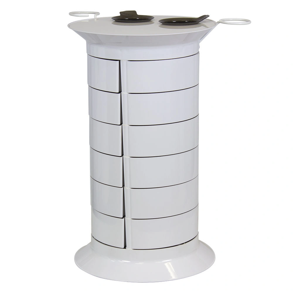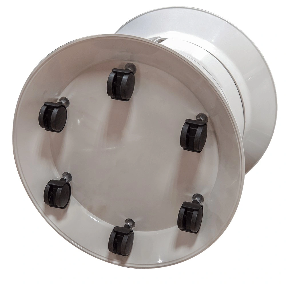 Верхняя крышка – также функциональный элемент оборудования. На поверхности предусмотрены отверстия для чаш и место для инструмента, необходимого во время рабочего процесса. Благодаря своей вместительности и двух держателей для фенов оборудование подойдет для обустройства нескольких рабочих мест. С помощью маневренных колесиков оборудование GiroCo можно с легкостью переместить в любое место.