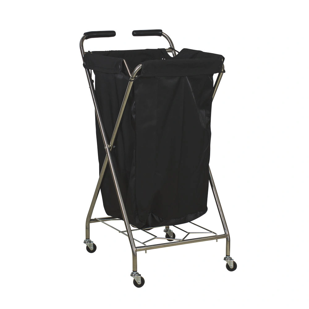 Тележка парикмахерская Т-202 предназначена для временного хранения использованных полотенец и других текстильных материалов. Это незаменимый помощник в любой парикмахерской, так как полотенца используются во время большинства процедур. Каркас данного оборудования для парикмахерской изготовлен из хромированного металла, устойчивого к воздействию влаги и дезинфицирующих средств. Для складывания полотенец на каркас крепится съемный мешок из прочного материала – полиэстера. Он легко чистится и не требует специального ухода, благодаря чему может прослужить несколько лет. В нашем интернет-магазине Вы можете купить тележку парикмахерскую Т-202 с мешком универсального черного цвета.