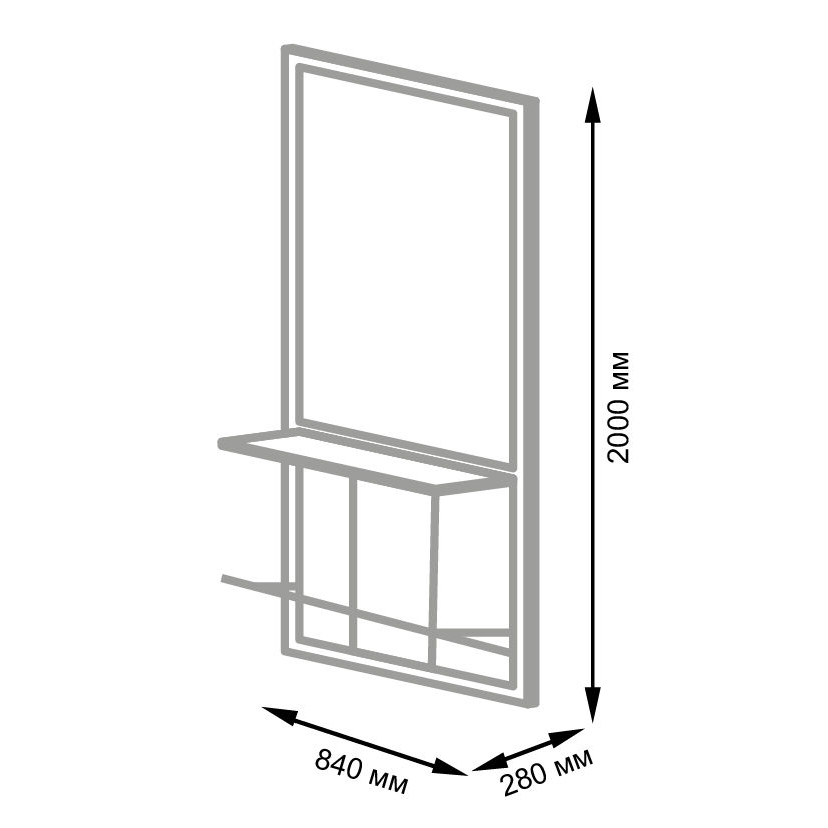 • Размеры (ВхШхГ): 2000х840х280 мм