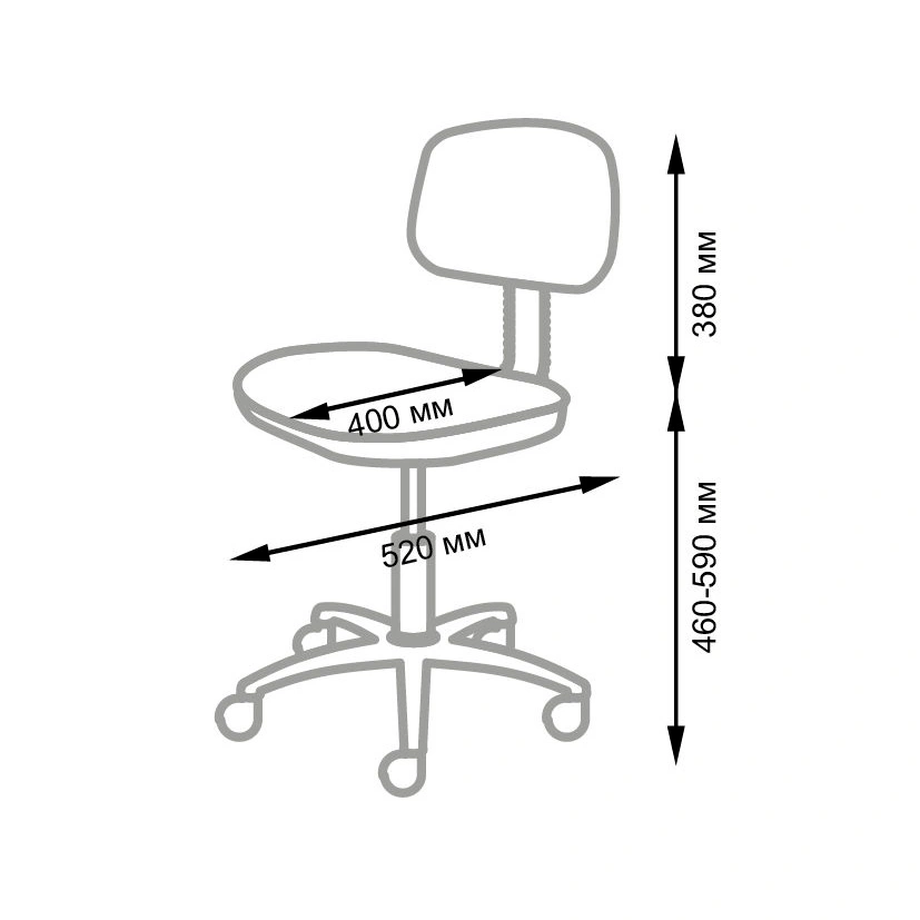 Комплектация: сиденье, спинка, устойчивое основание на колесах, пневматический подъемник.