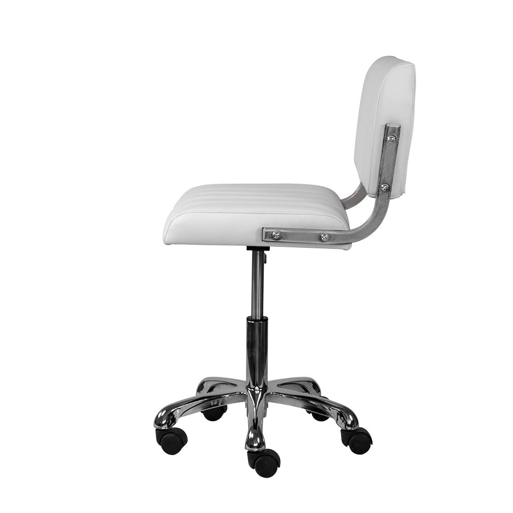 Обивка стула мастера – экокожа. Материал прочный, гладкий и приятный на ощупь. За счет своей структуры экокожа устойчива к истиранию и царапинам. Благодаря широкому выбору цветовых решений можно подобрать стул мастера для любого интерьера салона красоты. В качестве наполнителя использован эластичный поролон, не оставляющий вмятин на поверхности после использования.