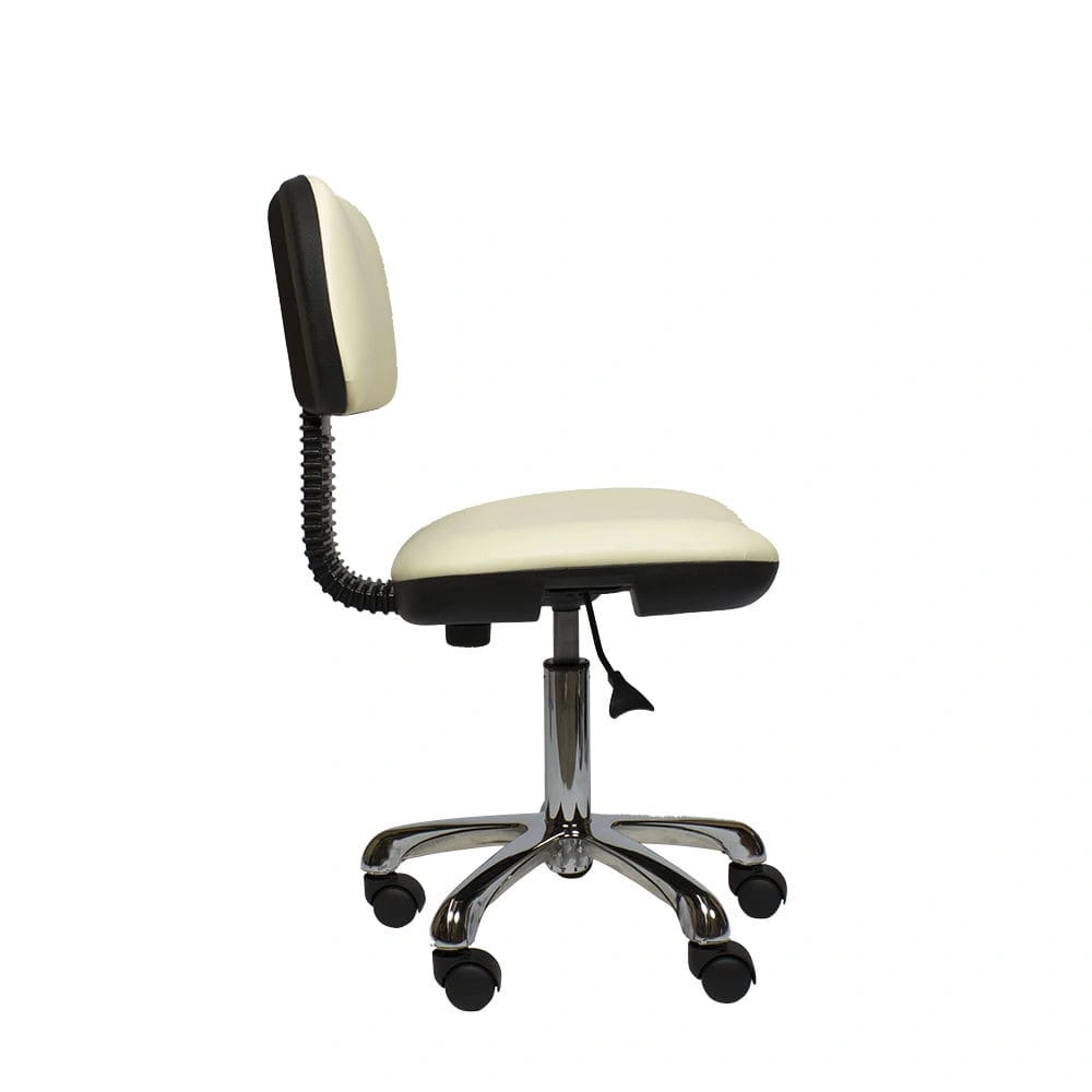 Во время работы мастеру по педикюру, как и другим специалистам beauty салонов, необходимо свободно перемещаться в рабочей зоне, поэтому стул должен быть мобильным. Для этого основание модели Сеньор комплектуется вращающимися пластиковыми колесами. Само пятилучье изготовлено из прочного металла с хромированным покрытием. Оно выдерживает рабочие нагрузки, делает стул устойчивым и выгодно подчеркивает его дизайн. Регулировка по высоте осуществляется с помощью надежного пневматического подъемника (газлифта).