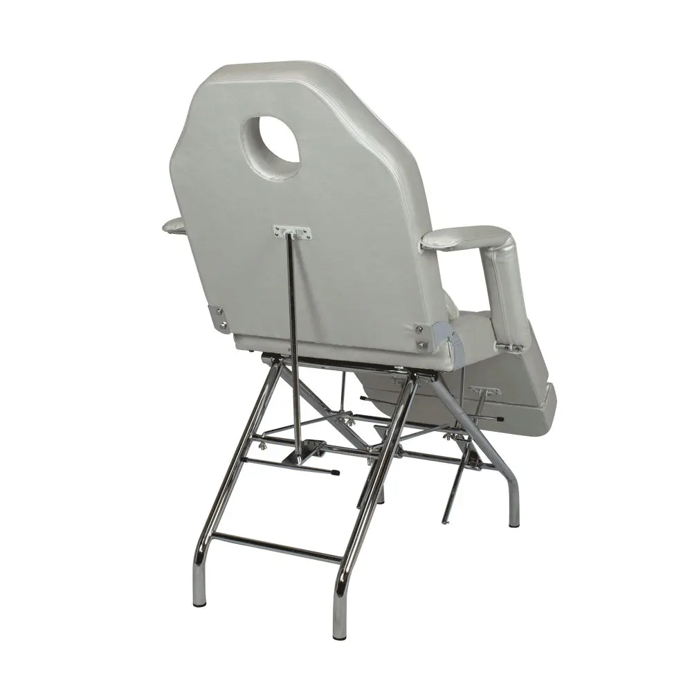 Педикюрное кресло МД-3562 предназначено для оказания педикюрных, косметологических и массажных услуг в салонах красоты и косметологических кабинетах. Оно установлено на прочный металлический каркас с хромированным покрытием, который обеспечивает устойчивость данного оборудования в сидячем, полулежачем и лежачем (горизонтальном) положении. Кресло разделено на несколько регулируемых сегментов для необходимой функциональности и удобства в эксплуатации. Это спинка, сиденье, две подножки с дополнительными выдвижными подушками, съемные подлокотники и съемная подушка под голову. Регулировка осуществляется механически.