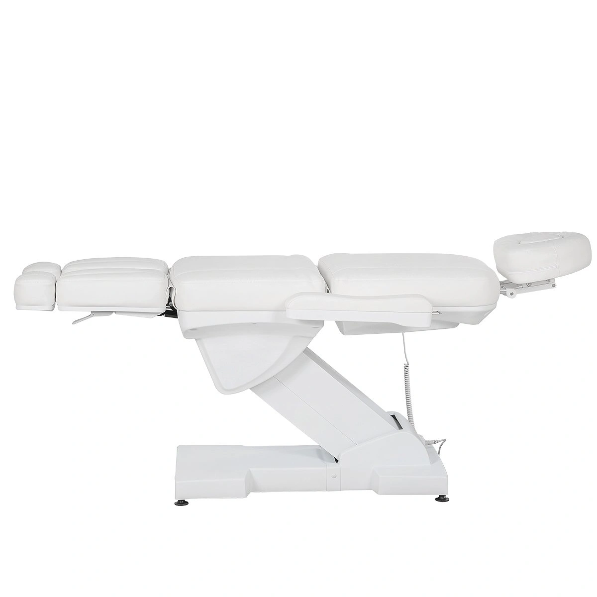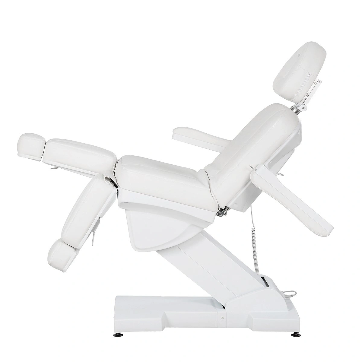 Комплектация: каркас, основание на подпятниках, сиденье, спинка, подголовник с вырезом для лица и съемной подушкой, мягкие элементы под ноги с выдвижными подпятниками, съемные подлокотники, электропривод (3 мотора) с пультом управления.