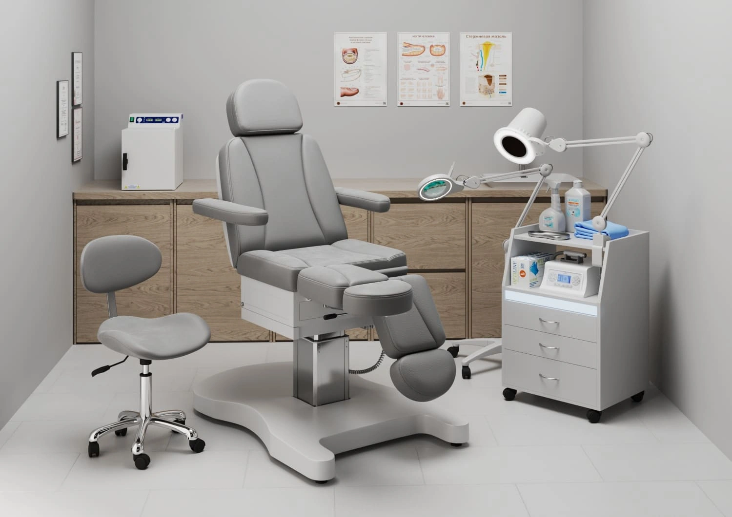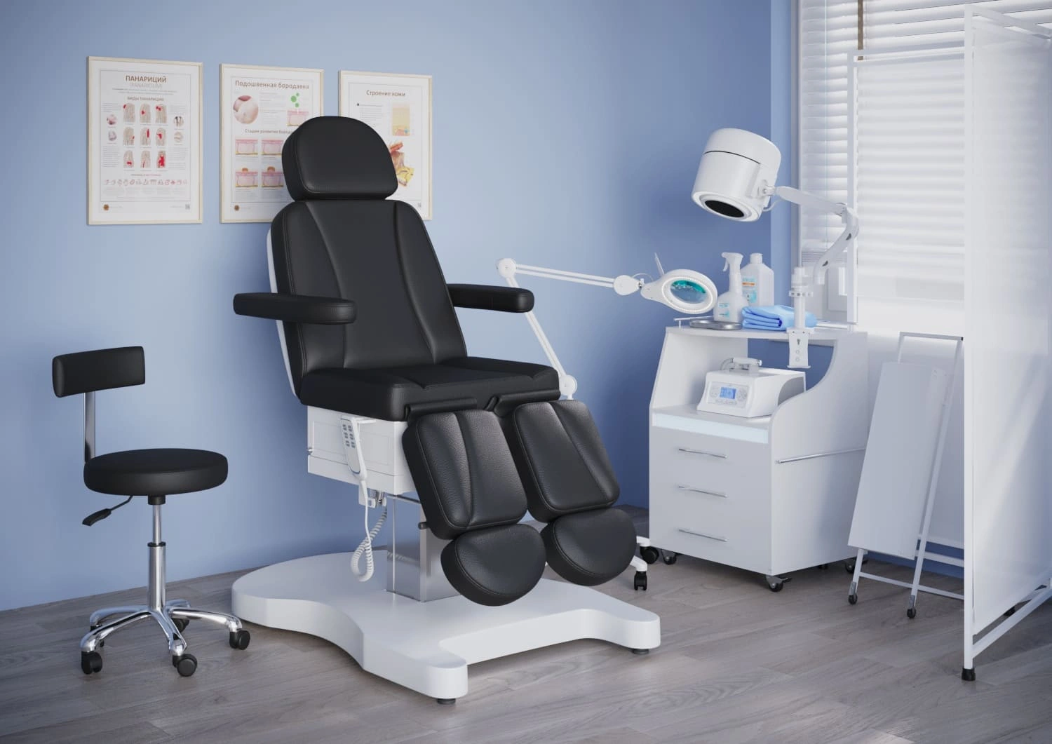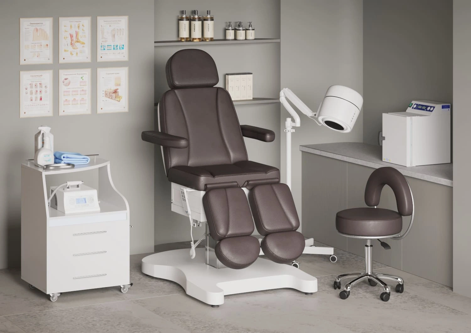 Педикюрное кресло Мэйджик Подо, 3 мотора гармонично сочетает в себе инновационные технологии, современный дизайн и хороший функционал. Высота, положение спинки и изменение угла наклона кресла регулируются с помощью трёх электромоторов с пульта управления, ножки – с помощью пневматики, все это позволяет быстро и с комфортом для клиента менять положение мягких элементов. Металлическое продуманное основание в пластиковом корпусе с углублением для удобного подъезда мастера к креслу.