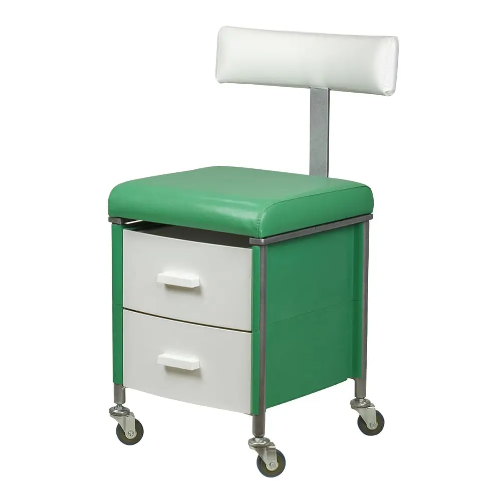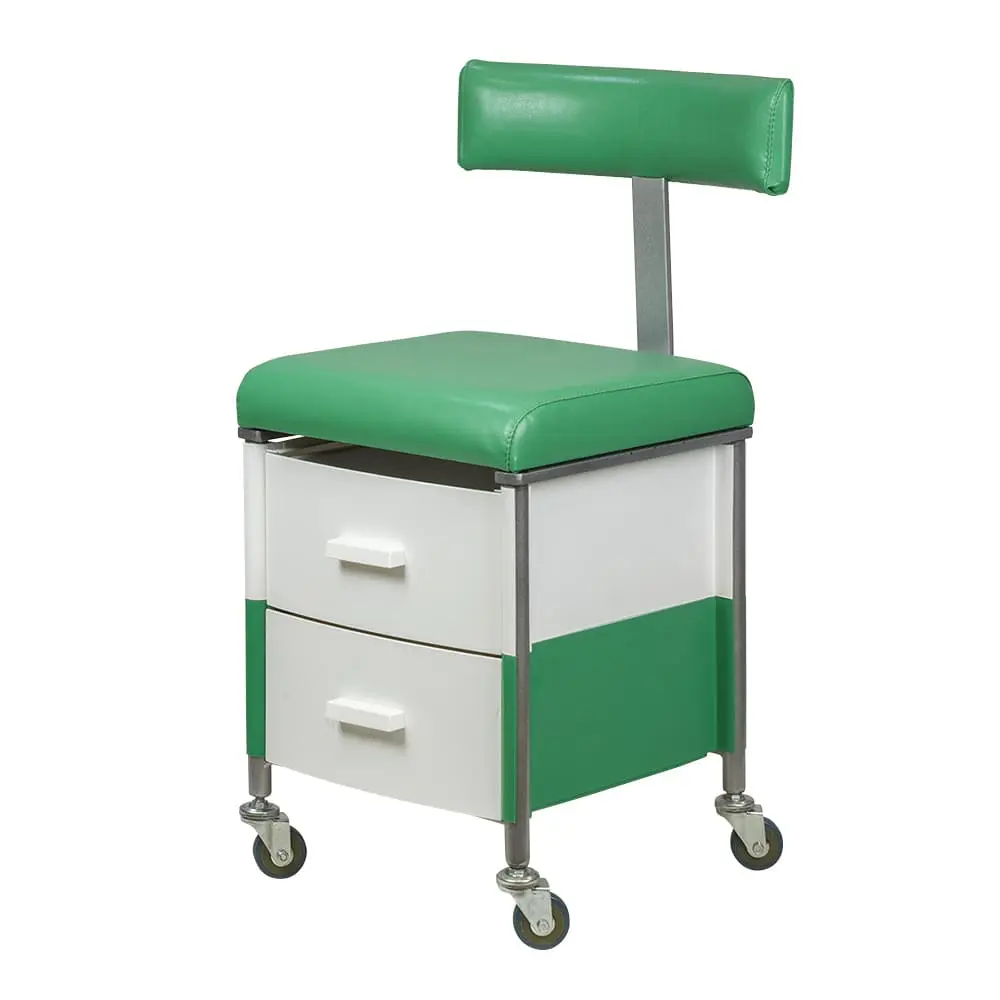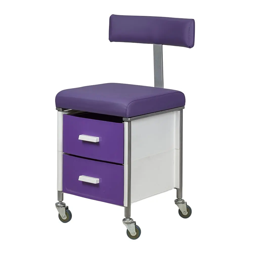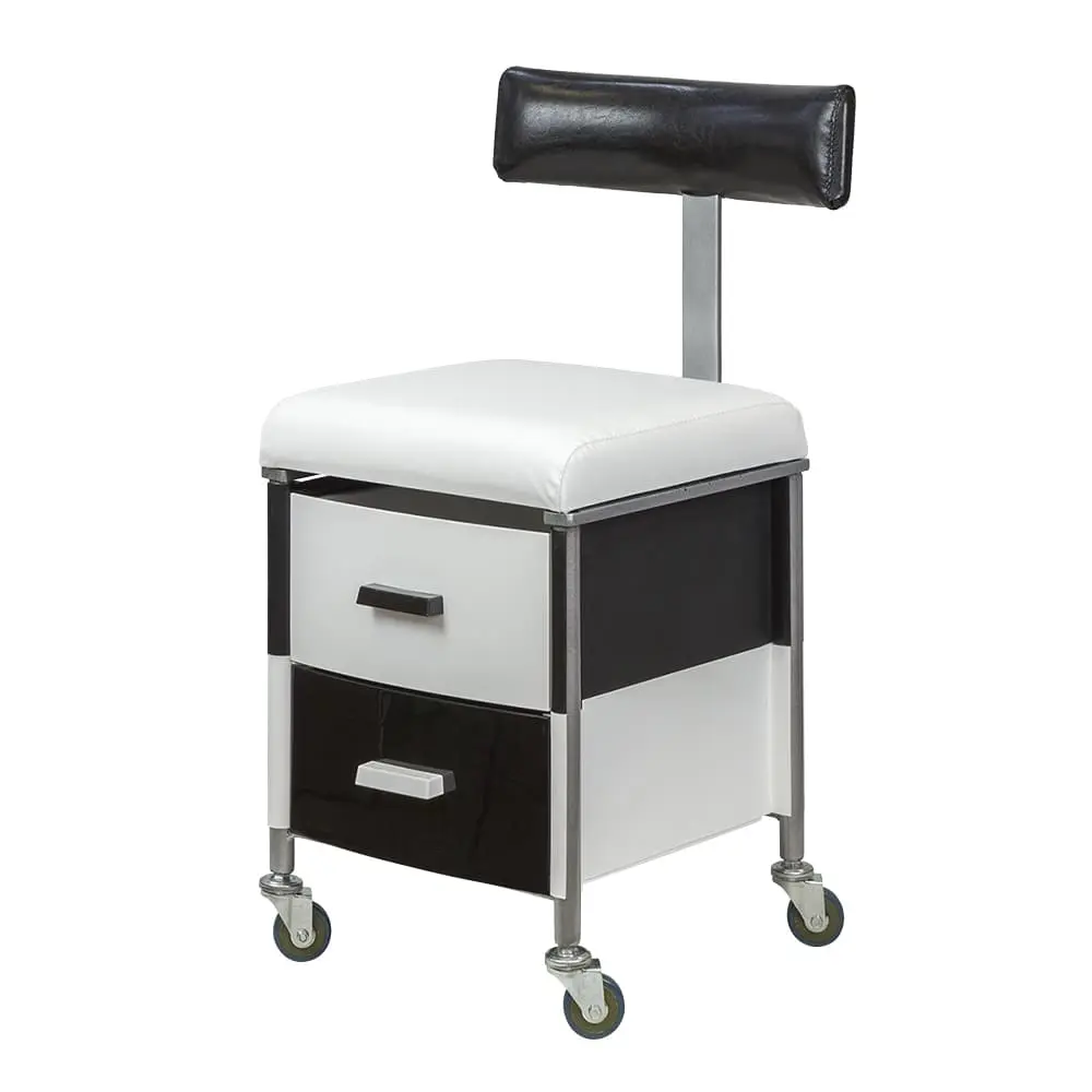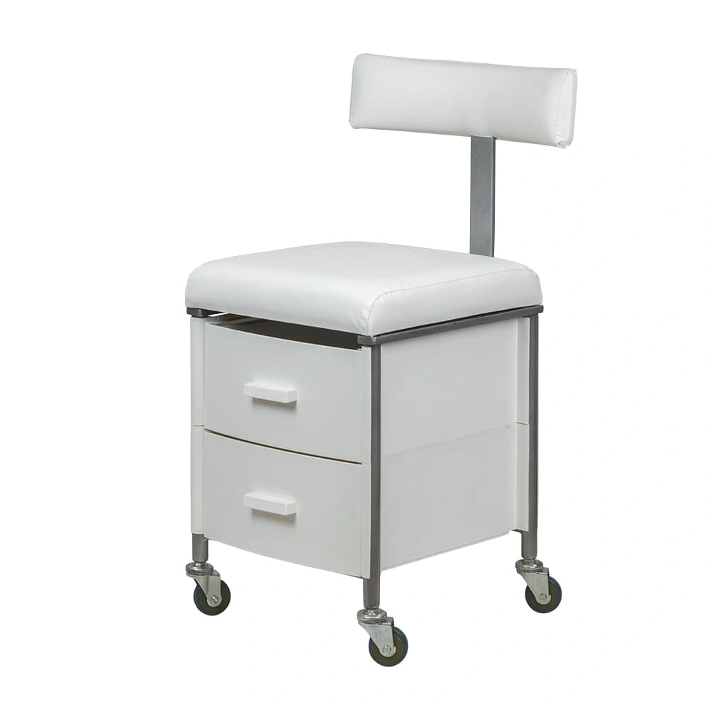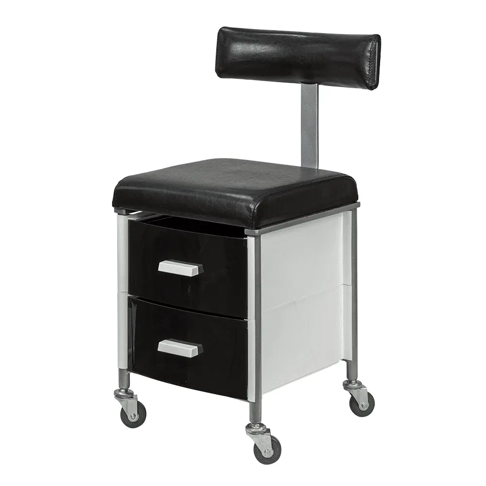 Стул укомплектован двумя выдвижными ящиками, где мастер может держать необходимые для работы инструменты и расходные материалы. Наличие мобильных колес позволит беспрепятственно перемещаться по рабочей зоне. При необходимости колеса можно зафиксировать специальными тормозами на каждом колесе.