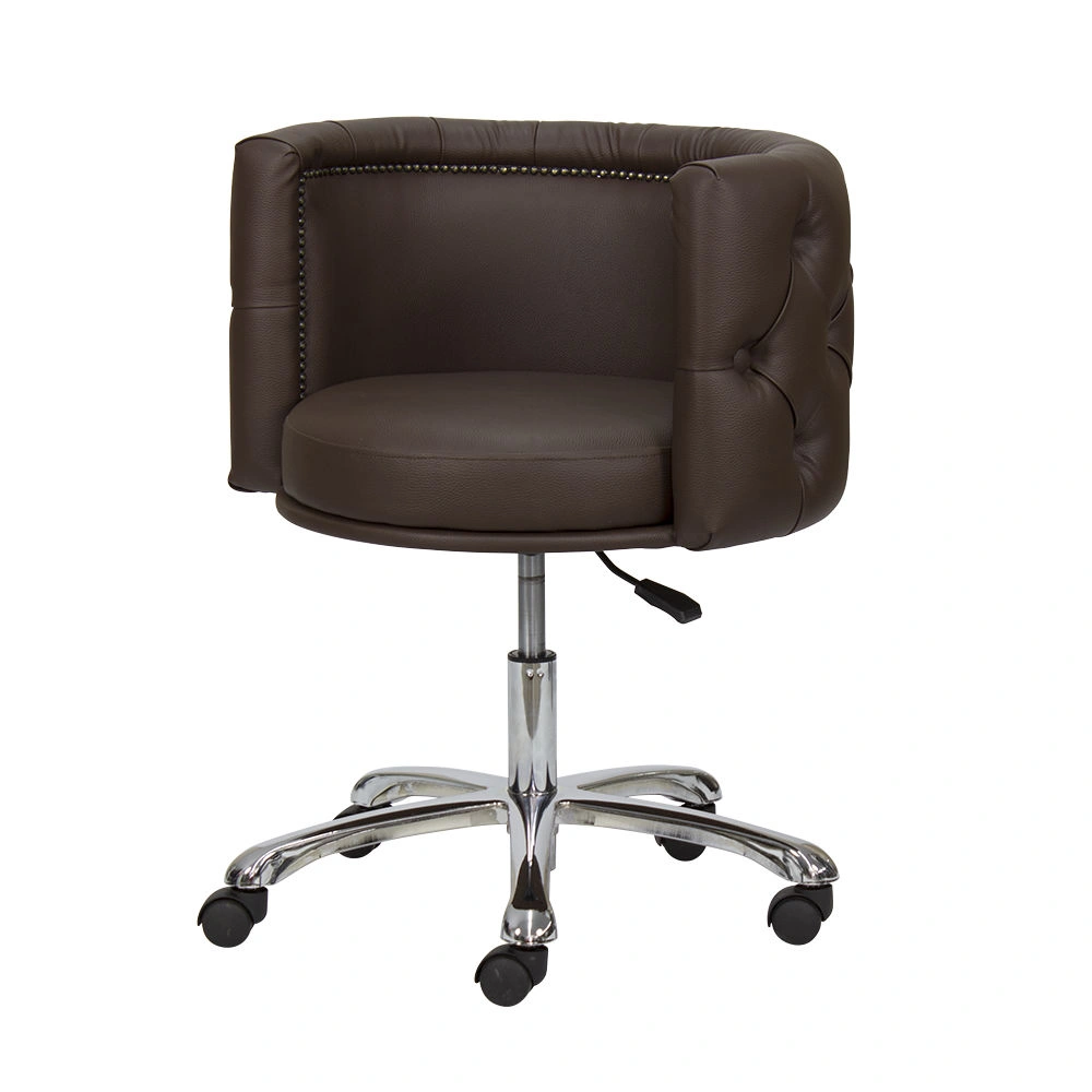 Стул для мастера ДЕКО изготовлен только из качественных и износоустойчивых материалов. Для набивки использовался упругий пенополиуретан. Сидение и спинка обтянуты качественной экологической кожей. Приятный материал не только выгодно подчёркивает стиль стула, но и обладает водоотталкивающими свойствами. Такое покрытие отлично выдерживает моющие и дезинфицирующие средства, что делает уход за мебелью простым. Спинка стула широкая, что позволит мастеру снизить усталость спины и ног и комфортно чувствовать себя во время рабочего процесса. Каркас стула мастера – хромированное пятилучье, обеспечивающее устойчивость на любых поверхностях. Удобные вращающиеся колёса из твёрдого пластика позволяют стулу мобильно передвигаться по рабочей площади. Осуществление подъёма с помощью пневматики позволяет выбрать оптимальную высоту сидения.