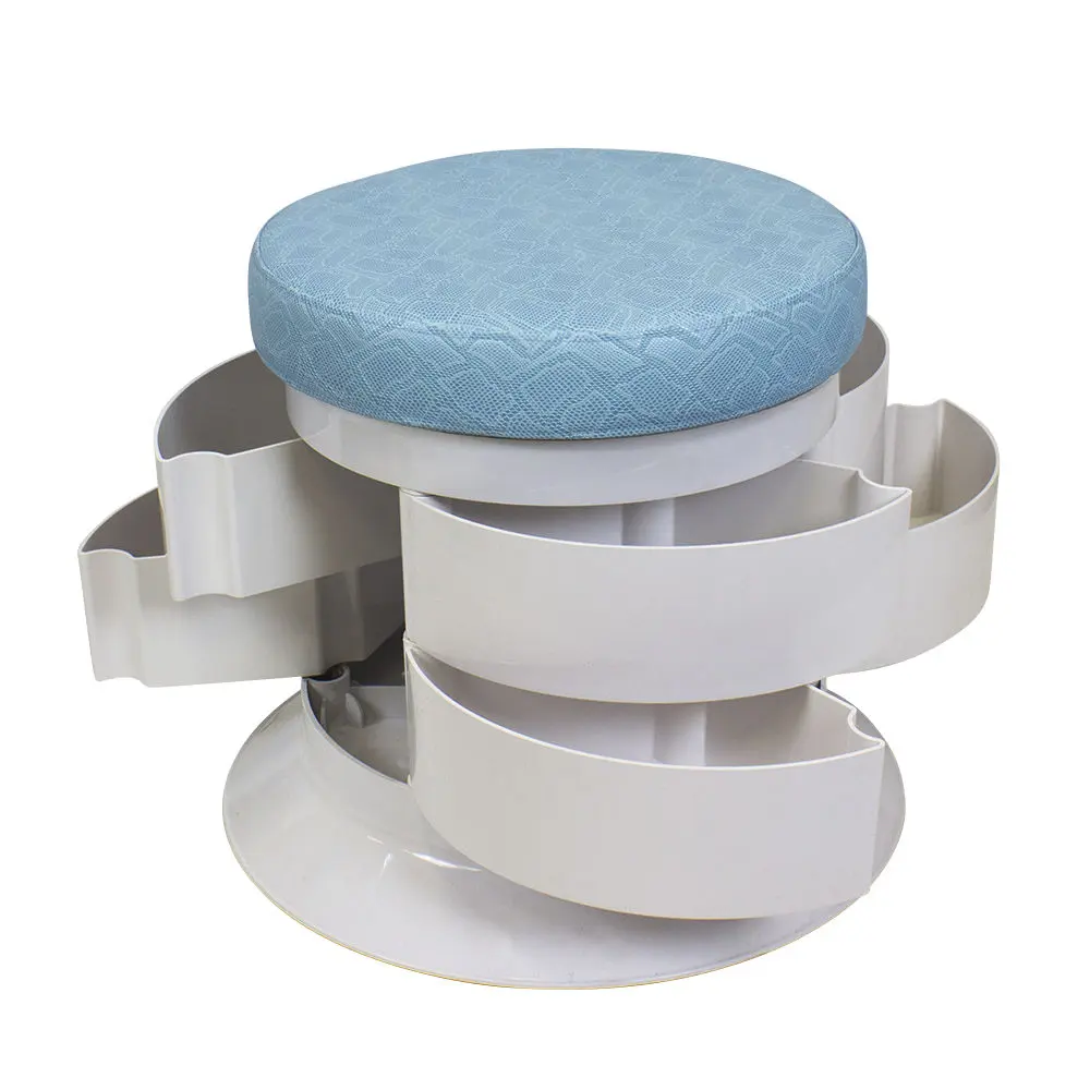 Удобную посадку обеспечивает мягкое сидение. Пуфик дополнен практичной деталью – тумбой из шести ящиков. Здесь мастер сможет держать приспособления, которые всегда должны быть под рукой.