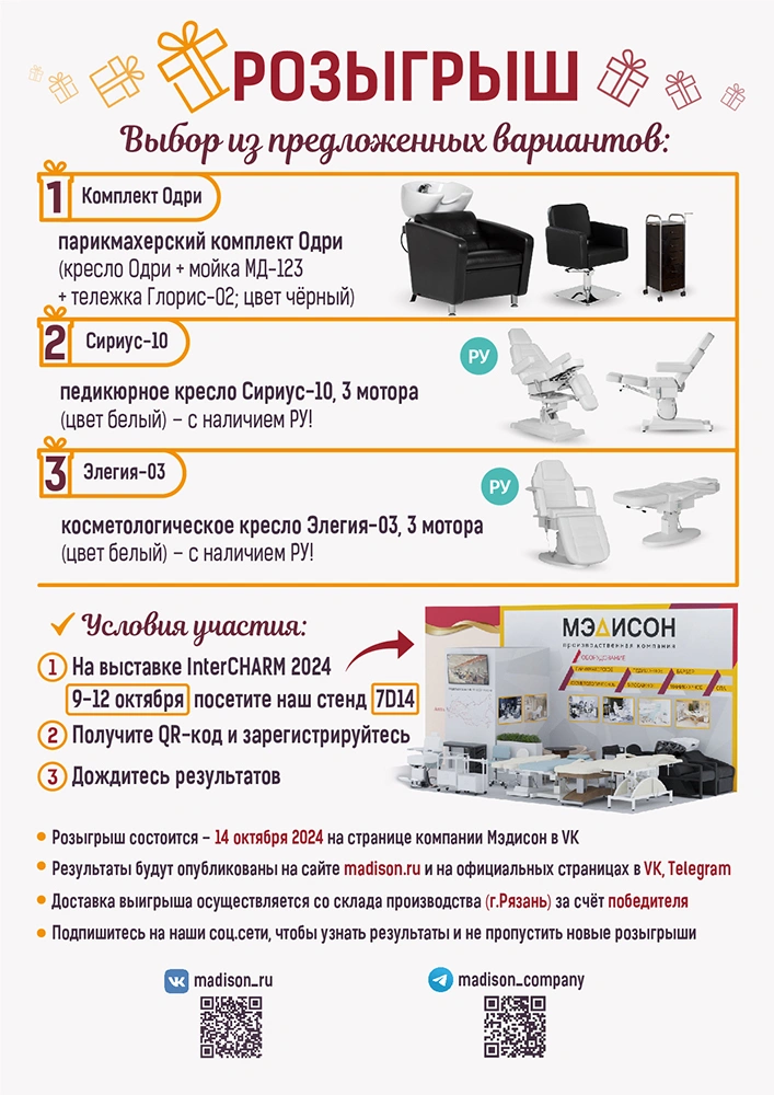 Розыгрыш состоится 14 октября 2024 на странице компании Мэдисон в VK.
